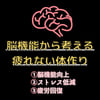主な内容として脳機能向上、疲労回復、ストレス減少など、疲れないようにするための情報がメインです!