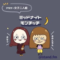 ″真夜中″って、いいですよね。高校時代からの友人 おなつ と おのんちん。 三十路のしがない主婦2人が日々生きる中で遭遇した出来事や感じたこと、好きなものごとについてひたすらおしゃべりします。 真夜中のおともに、なんでもないときに、日常のBGMかのように……2人の会話を盗み聞きしてもらえたら嬉しいです♪ 🍌プロフィール おなつ/左 丁寧さと危うさを兼ねそなえる女 センシティブおばさん 食べ方のこだわり強め。目玉焼きが好き。 個人アカウント↓ https://stand.fm/channels/6000605bfc3475e2c8496c69 おのんちん/右 進撃の叙情師 パッションおばさん 喜怒哀楽を隠したいけど隠せない。 捨て身のウケ狙いだった自分を取り戻したい。 🍌初めましての方はこちらから是非! 【祝!総再生回数1000回記念】改めてお互いを紹介します https://stand.fm/episodes/6035de210ec063785f688013 🐒人気の配信はこちらから🐒 【第45回 この家事どうしてる?〜バスタオルの消費期限〜】 https://stand.fm/episodes/604b1f5b16cc32050d1ec703 【第47回 春の、ゴハンの話】 https://stand.fm/episodes/6050652793579a22bd668194 【第42回 女同士の大喧嘩(レター返信)】 https://stand.fm/episodes/604b09b516cc325a711ec52f Twitterもやっております。 Twitterマークからぜひにフォローおねがいします↘︎↘︎
