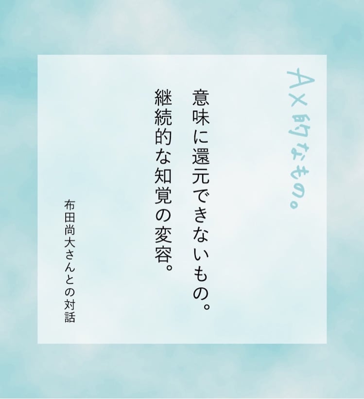 RaNa extractiveで進めている「Art Experience」通称「AX」プロジェクト。具体的なプロジェクトと並行して、プロジェクトメンバーがAXについてどういう視点で関わっているかを対話していきます。