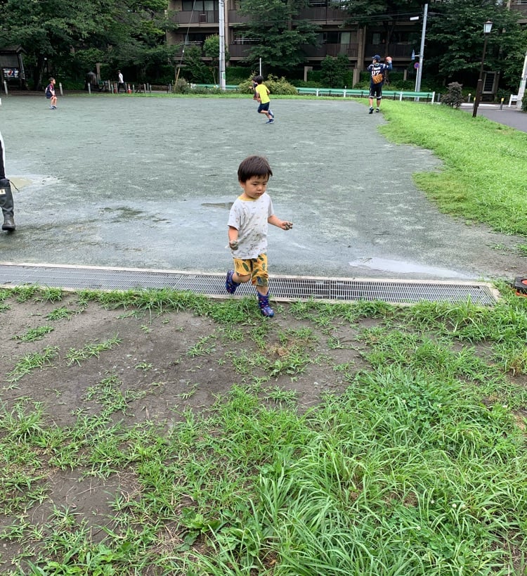 今日は泥まみれで走り回る息子です。
