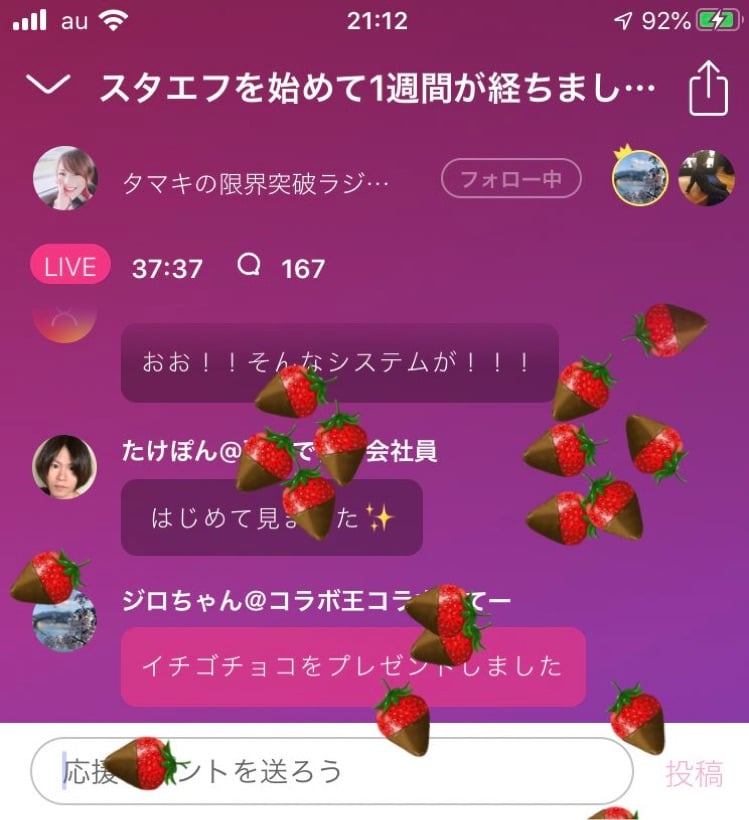 配信者へプレゼント機能です。