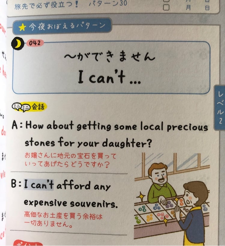 あることが「できない」と伝えるときには、I can't...が役に立ちます。