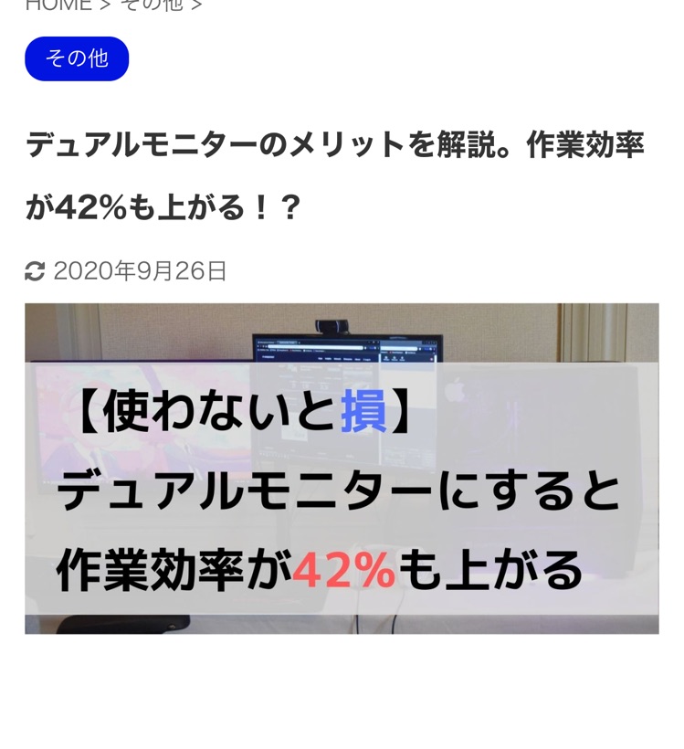 こんにちは、ユーレスです。 今回のテーマは『デュアルモニターにすると作業効率がなんと42%もアップする』についてです。 日頃、仕事やプライベート、人間関係などで悩んでいる人はぜひ聞いていってください! ブログでも悩めるサラリーマン向けの情報を発信しています↓