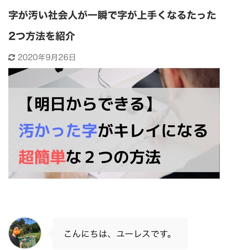 こんにちは、ユーレスです。 今回のテーマは『字が汚い社会人へ、字が上手に書ける超手軽な2つの方法を解説します』についてです。 日頃、仕事やプライベート、人間関係などで悩んでいる人はぜひ聞いていってください! ブログでも悩めるサラリーマン向けの情報を発信しています↓