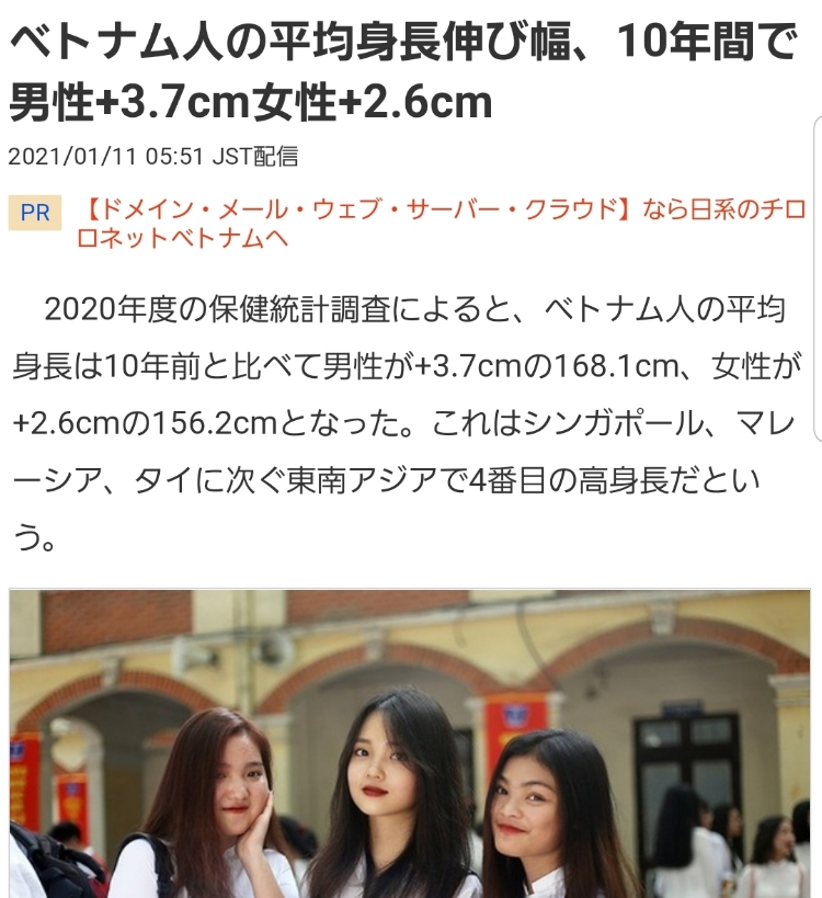 10年前と比べて、高くなっているそう!年齢層で数字も変わりそうですが、ベトナム人の方が身長高い!? ベトナム人 男性:168.1cm 女性: 156.2cm 日本人(wikipediaより) 男性: 168.0cm 女性: 154.5cm #海外生活 #ベトナム #ホーチミン #バイク #洗車 #3万ドン #身長 #栄養状態