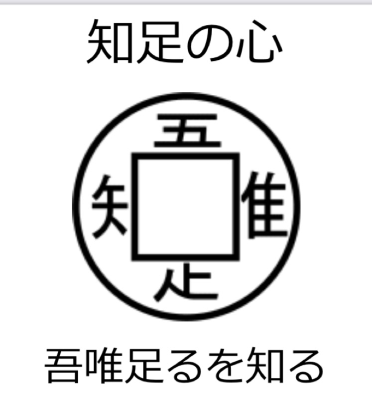 京都の龍安寺さんのつくばい(お茶室に入る前に手を清める水が入った鉢)には、吾唯足知(われ、ただ足るを知る)という言葉が刻まれています。簡単に言えば「満足する気持ちを持ちなさい」との意味であり、「足ることを知る人は、心は穏やかであり、足ることを知らない人は、心はいつも乱れている」とのお釈迦さんが教えて下さっています。