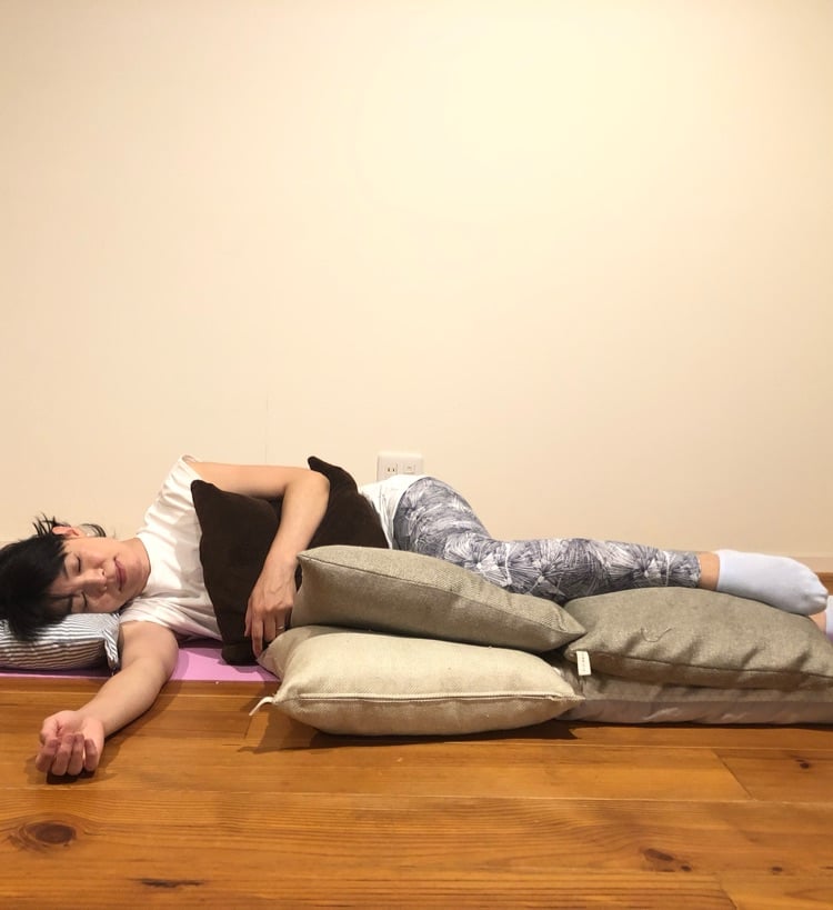 疲れた時、入院・療養中も寝たままできる体を横たえる極上のリラックスヨガです。#乳がん#子宮がん#がんサバイバー#リラックス#不眠#安心#不安#副作用#抗がん剤治療#化学療法#リンパ浮腫#bcy#大阪#ヨガスタジオ#ヨガセラピー