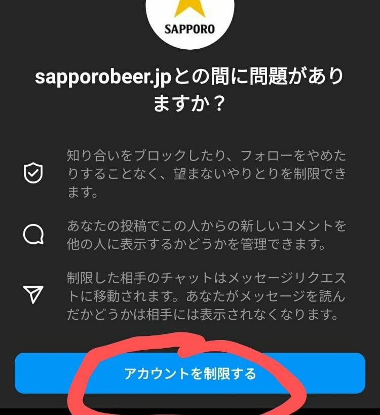 ▶️該当アカウントプロフィールから「ミュート」「制限する」を実行👌