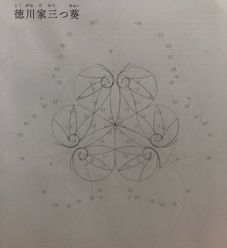 コンパスで紋を描いてます。 徳川家の紋です。 だいぶ形ができてきました! 誰でもできる コンパスと定規で描く「紋」 UWAEMON