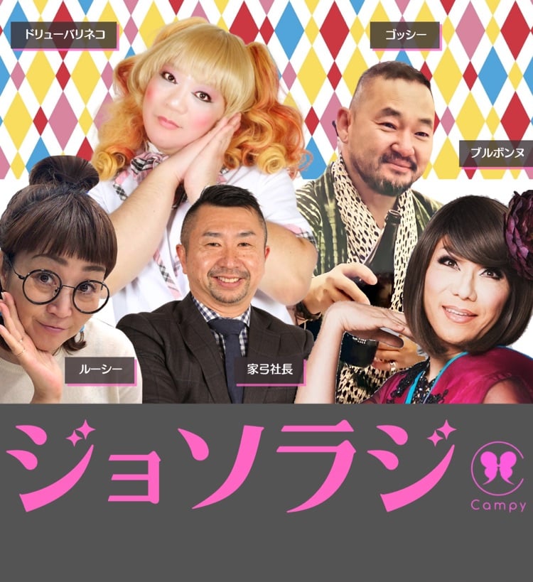 Campy!barのお局女装ウェイトレス、TVバラエティなど出演多数。