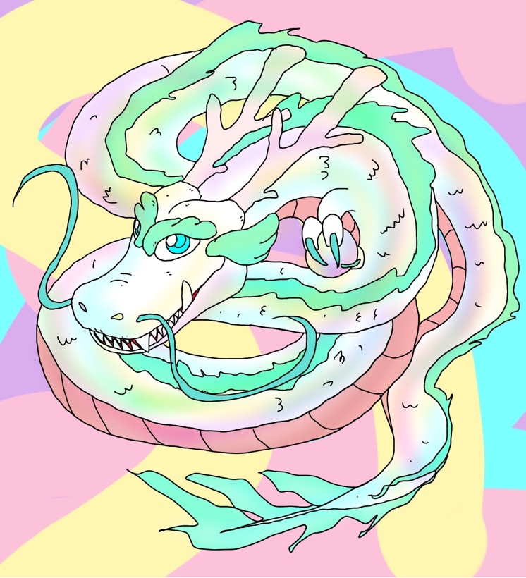 最初に描いた虹龍です。