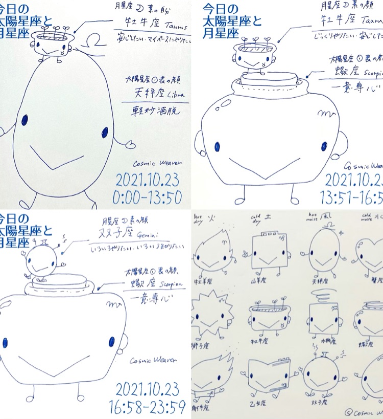 20211023〜太陽天秤座・月牡牛座、太陽蠍座・月牡牛座、太陽蠍座・月双子座