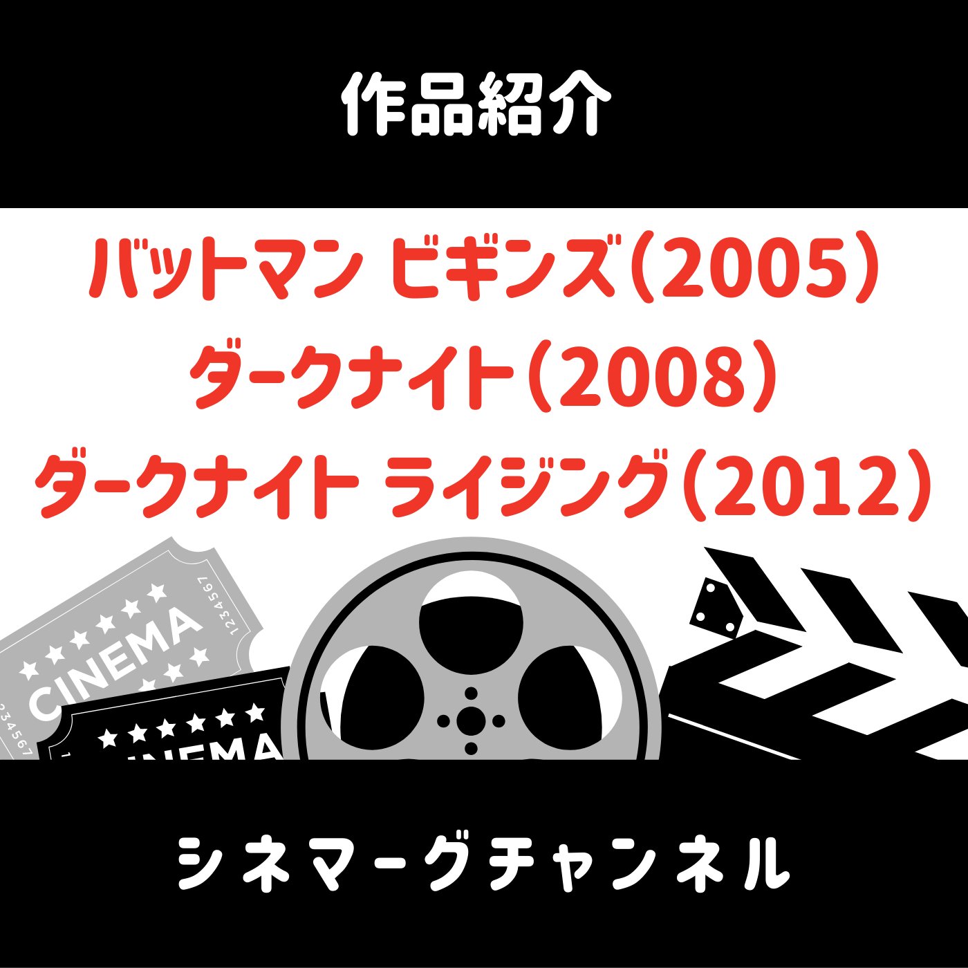 今回取り上げるのは「バットマン ビギンズ(2005)」「ダークナイト(2008)」「ダークナイト ライジング(2012)」です。 クリストファー・ノーランが監督を務め、クリスチャン・ベイルがバットマン役を演じた「ダークナイト・トリロジー」です。 作品の詳細まで触れておりますので、ご注意ください。 取り上げた作品の一覧は下記を参照ください。