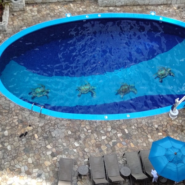 プールサイドオフィスでお仕事