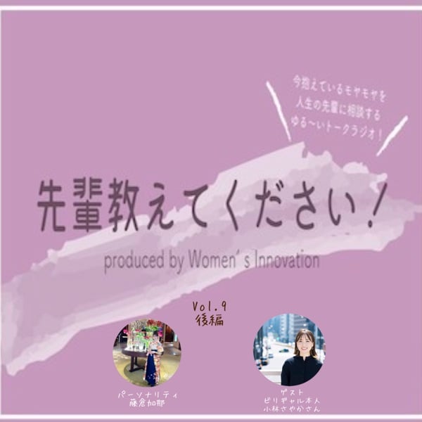 パーソナリティのモヤモヤを、人生の先輩であるゲストに相談する、ゆるーいトークラジオ、その名も「先輩教えてください!」。毎回変わるパーソナリティと、そのパーソナリティが今会いたいゲストにご出演頂く、Women’s Innovationの配信型ラジオ番組。
