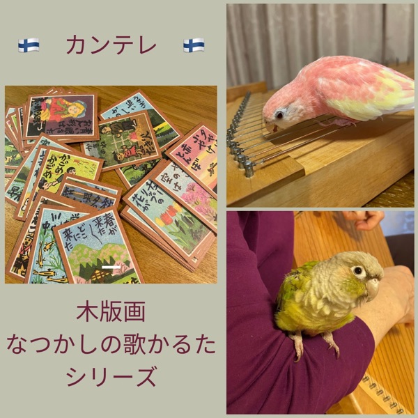 木版画なつかしの歌かるたより めだかの学校 今日もウロコインコの琳音の声入りです😅 #カンテレ #北欧 #フィンランド #民族楽器 #伝統楽器 #めだかの学校 #楽曲申請済