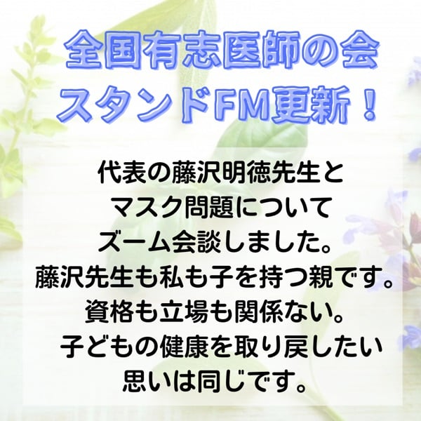 全国有志医師の会 代表藤沢明徳先生とマスク問題を語る。