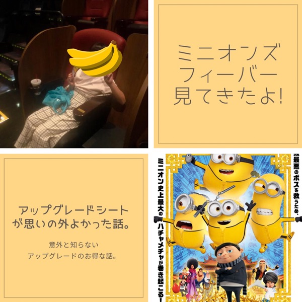 娘とミニオン見てきましたー! その時利用したイオンシネマのアップグレードシートが 結構よかったのです☺️