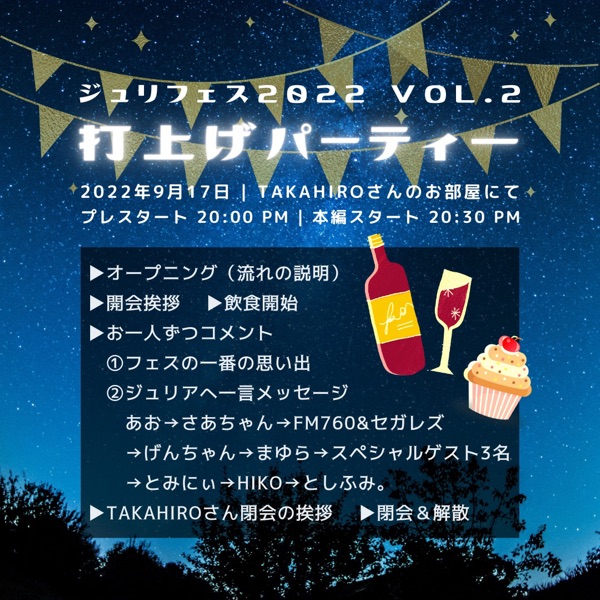ジュリフェス2022 vo2 打ち上げパーティのお知らせ😊