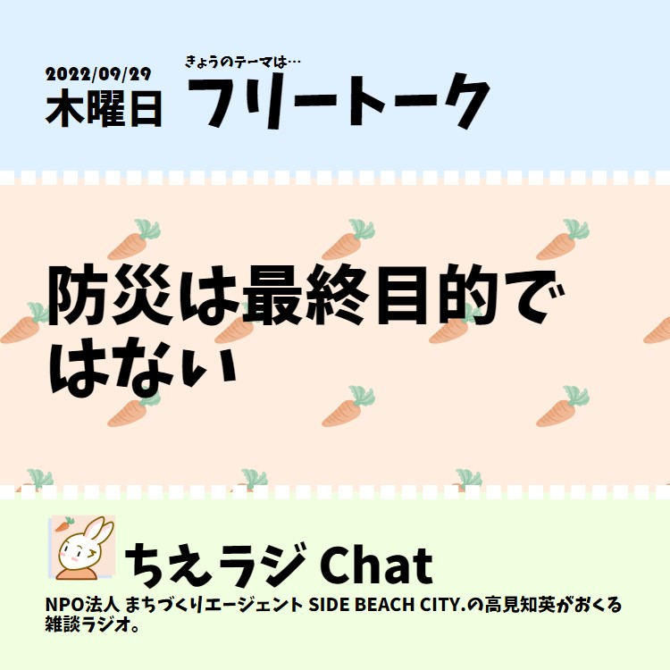 Code for Japan Summitウォッチパーティの感想などで防災活動の話しを聞いて、防災って最初や最後に語る話ではないよね?と思ったので、その話をしました。 #防災 #ちえラジフリートーク