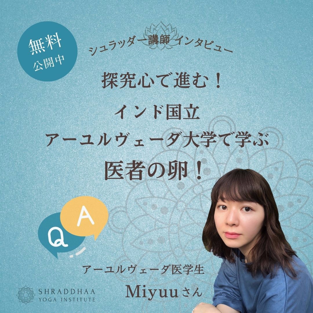 インド国立グジャラートアーユルヴェーダ大学留学中のMiyuuさんにインタビュー!留学中の様子や大学のキャンパス、寮のこと、インドにおけるアーユルヴェーダや西洋医学の位置付けなどについて聞いています!動画で見たい方は、シュラッダーHPまで!
