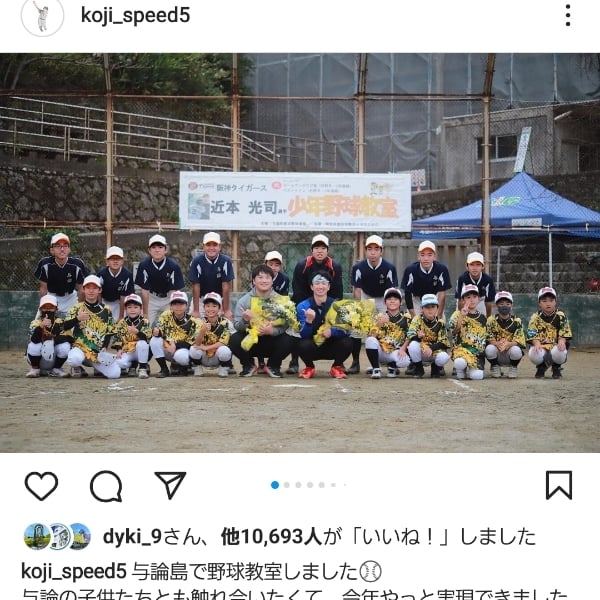 【島の野球少年⚾歓喜‼️】阪神タイガース🐯の近本選手が与論島で野球教室‼️