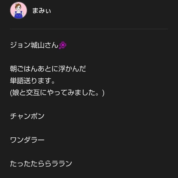 今回は、レターでいただいた言葉を使ってお題にさせてもらいました♩