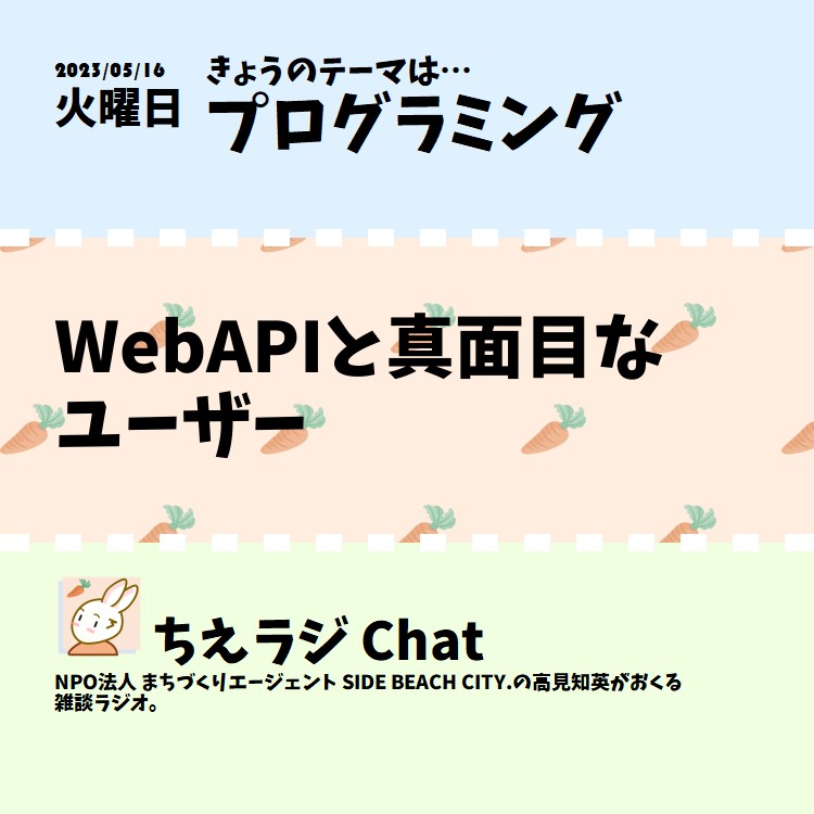 Webサービスをプログラムから操作する方法にはWeb APIのほかスクレイピングがある。Web APIを無くせば不正利用が減る みたいには思ってほしくないなあ という話をしました。 #プログラミング #WebAPI #ちえラジプログラミング