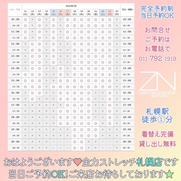 朝イチ予約🆗全力ストレッチ札幌店👙7/11火曜日