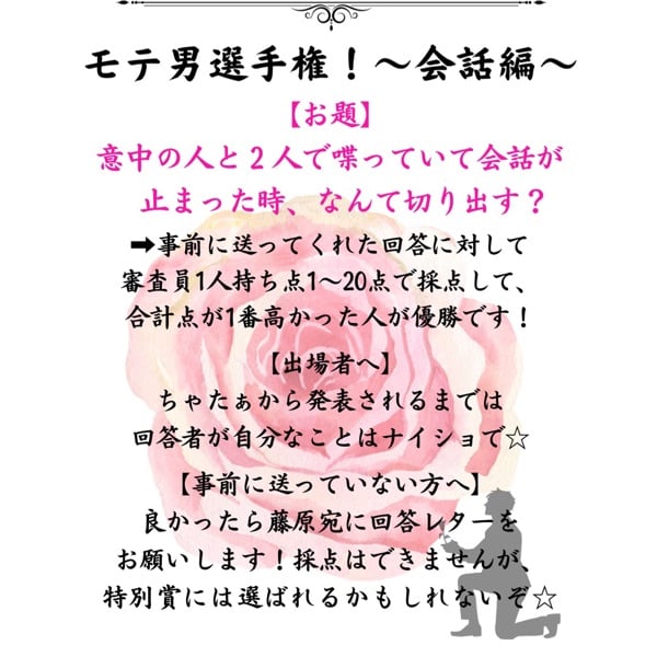 「モテ男」とは銘打っておりますが、性別問わず出場できます。