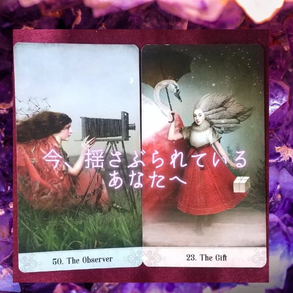 自身がギフトってすてきね⸜( ´ ꒳ ` )⸝♡︎ お昼のライブでカード見たとき、カメラ覗いてる女性の頭から、綿毛が飛んでってるのが気になってたの。だんだんほどけてくんだなって思ったのね。人見知りなんで潜ってましたがww みゅぽさんのお喋り聞くの好きだから、ギフトね♪また聞かせてね❀.(*´▽`*)❀.