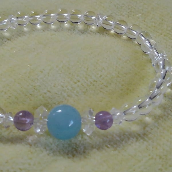 乙女座♍の新月からのメッセージをお伝えいたします🌟。 画像はマリアライト、アクアマリン、水晶のブレスレットです。