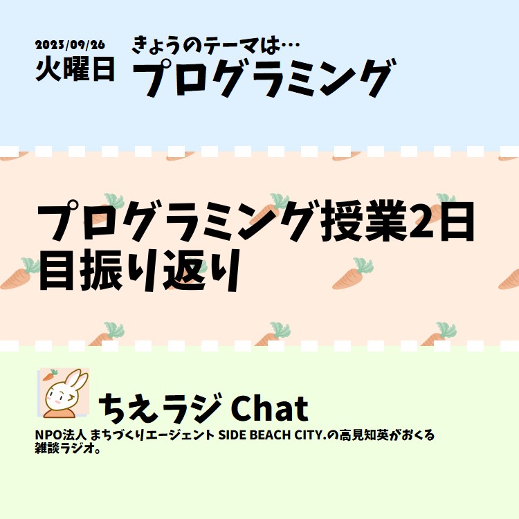 先日中学で行ったプログラミングの授業2日目。これの振り返りを行ないました。 #プログラミング #プログラミング学習 #ちえラジプログラミング * プログラミングの授業1日目ふりかえり - ちえラジ Chat | standfm
