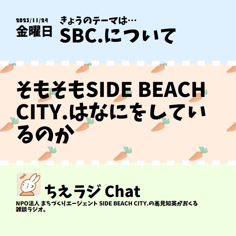 SIDE BEACH CITY.ってそもそも何をしている団体なのか?自分は何をしていて、なんでこんなことをやっているのかということについて改めて話しました。 #NPO #ちえラジSBC.について