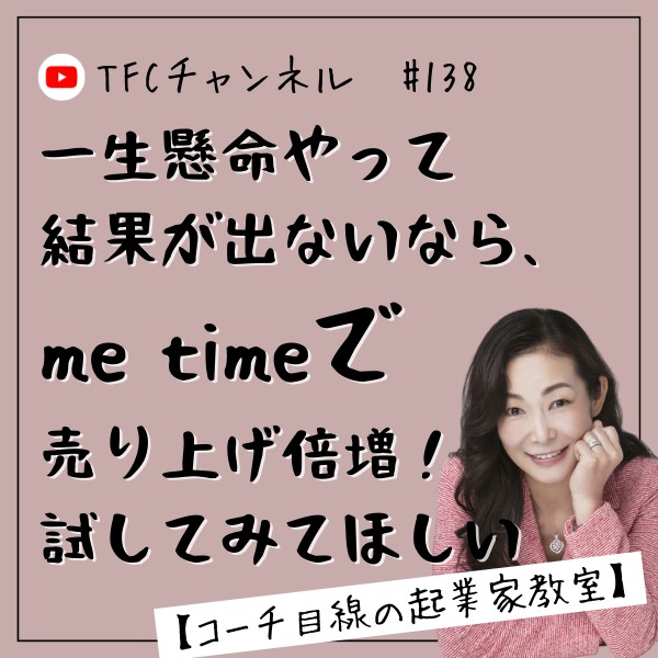 本日のテーマは【コーチ目線の起業家教室】「一生懸命やって結果が出ないなら、me timeで売り上げ倍増! 試してみてほしい」です。