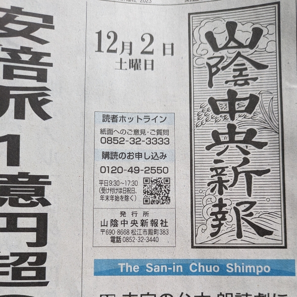 山陰中央新報をとりはじめた。