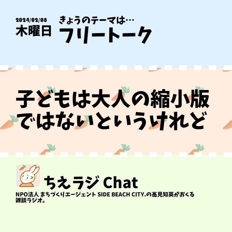 子どもは大人の縮小版ではないという言葉を聞きます。ただ逆に大人は子どもの拡大版と言っても良いのではと思ったので、その話をしました #声日記 #ちえラジフリートーク