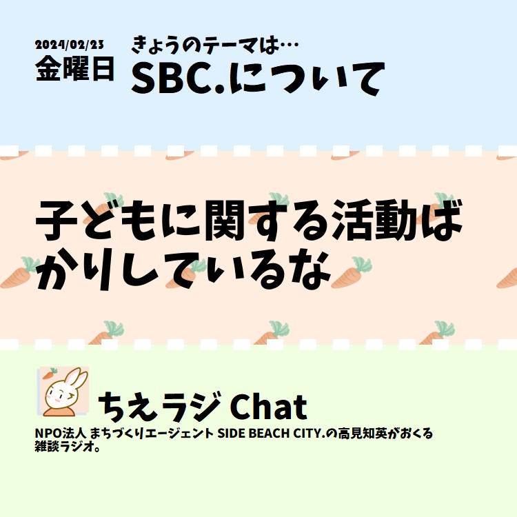 SIDE BEACH CITY.で活動していて最近子どもに関する活動ばかりしているなと感じたので、その理由について話しました。 #子ども #声日記 #ちえラジSBC.について