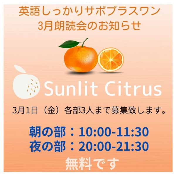 March’s storytelling challenge🍊 3月の朗読会 Sunlit Citrusをこれからほぼ毎日音読し3/31まで練習しようと思います。 今日は1回目。ちょっとスタミナ不足。 どう変化するか楽しみです。 スクリプトは後日アメブロに載せます。 #英語学習 #朗読 #英文朗読 #音読 #英語音読 #物語