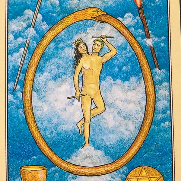 「男と女のそばでとぐろを巻く蛇」