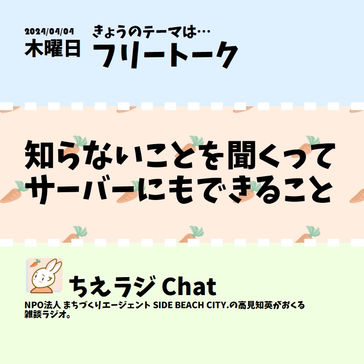 最近地域で活動されてる方にメッセージを既読スルーされることが多くて、事情を聞いてみるとわからなかったからって答えられることが増えてきました。知らないことを聞くって難しいのかなって思った話をしました。 #声日記 #ちえラジフリートーク