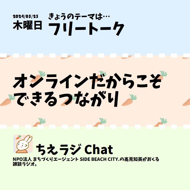 オフラインでも気軽にイベントが開けるようになってきた今。でもそれでもオンラインで集まれる場が必要だよねっていう話をしました。 #オンラインイベント #声日記 #ちえラジフリートーク