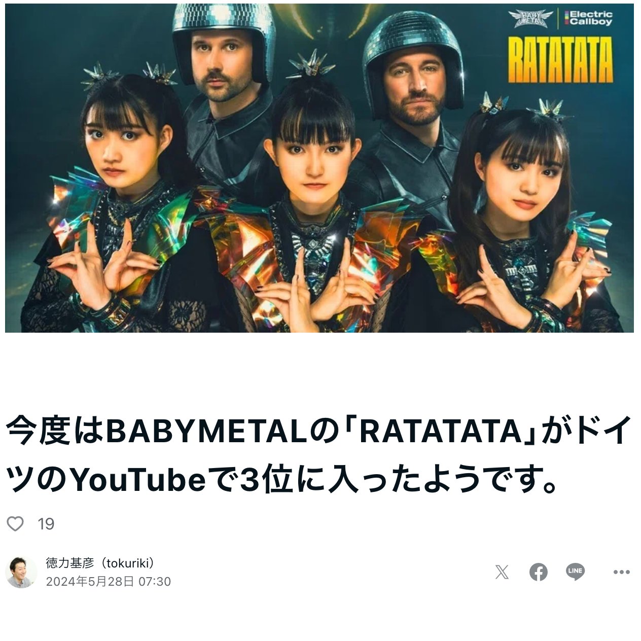 今度はBABYMETALの「RATATATA」がドイツのYouTubeで3位に入ったようです。|徳力基彦(tokuriki) https://note.com/tokuriki/n/n416461d110af