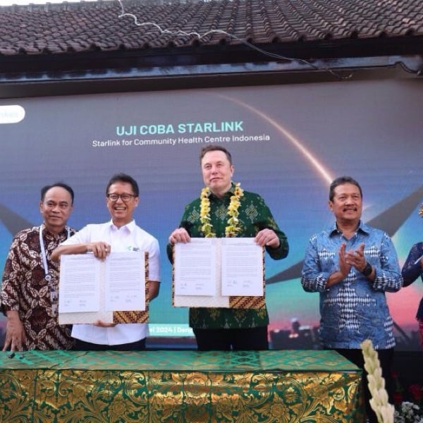 サムネ画像:スターリンク運用開始式典の様子(インドネシア保健省 通信・公共サービス局のホームページより)