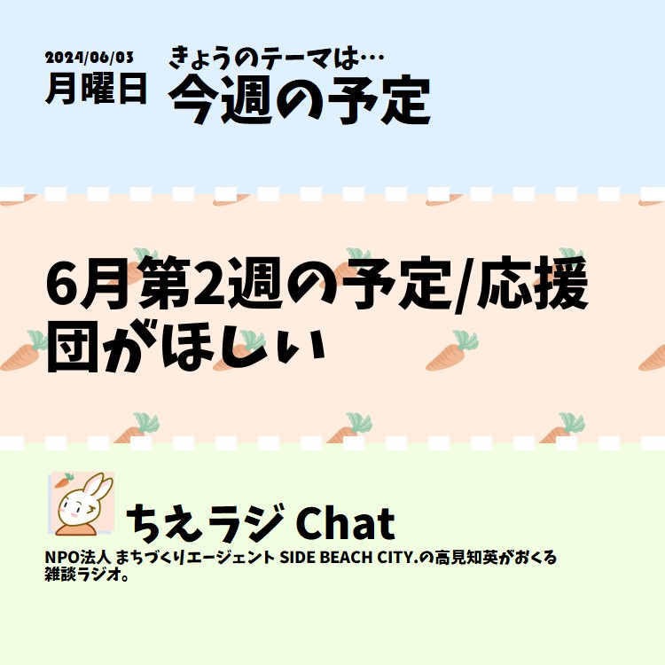 6月第2週の予定と、応援団がほしいという話をしました。 #声日記 #ちえラジ今週の予定