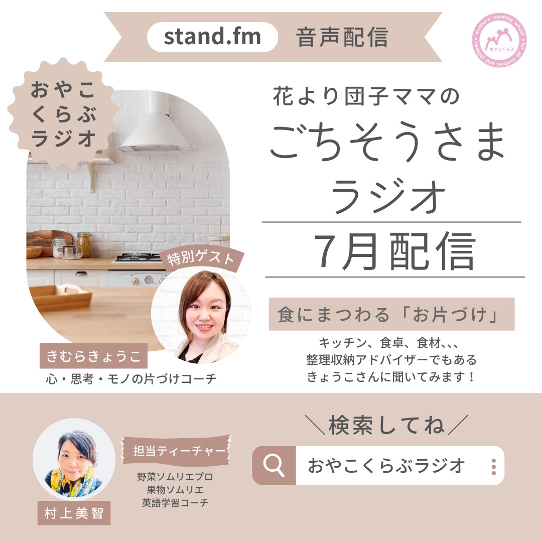 心・思考・モノの片づけコーチ、きむらきょうこさんを特別ゲストにお迎えして、食に関わるお片づけの話をしています。