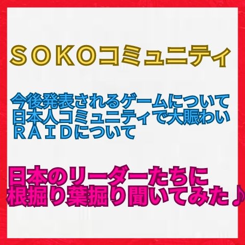 昨日のSokoinu 日本人コミュニティのリーダーさんとのスペースをまとめましたのでポストさせて頂きます🤖 SOKOコミュニティとは ・ヨーロッパ発 ・元は広告関係者がファウンダー ・英語圏より日本人コミュニティが大盛り上がり ・第一四半期よりスタート ・テレグラムでSOKO配布中 ・現在コミュニティ拡大中 ・第4四半期ゲーム公開予定 ・クイーン(女性)がコミュニティトップ ・各国に運営、リーダーが10名以上 なぜコミュニティが盛り上がっているのか ・ゆみさんが初心者にもきめ細かなフォローしている ・コミュニティの皆さんが親切、暖かい対応 ・初心者にもわからないことがあれば優しく教えてくれる環境がある ・今現在メンバー2000名弱 SOKOトークンはいつ上場か? ・第4四半期上場予定 ・どこのDEXかCEXかはまだ非公開 ・SOKOゲーム内の通貨も発行予定 SOKOのNFTについて ・以前はオークションや一般販売もあった ・今は2次流通は回っていない ・過去、コミュニティ貢献度に応じてプレゼントされた ・今後1000ドル以下では販売しない予定 ・ゲームのユーティリティあり ・他にもボーナス特典もあり 今後のゲーム展開について ・バトル to Earn ・最初はタップしレベルを上げる ・育てたキャラが売れる? ・NFTを使ったゲームになる予定 ・NFTを持っていないなくても遊べる(?) ・アイテムもNFT(?) RAIDについて ・Xを使ってRT、いいね等してポイントGET ・RAIDがSOKOトークンを増やす近道 ・もらえるトークンは変動有 ・1日多い時で30回開催 ・参加者は多い時で70名~90名の時も!! 尚、上記情報は誤りがある可能性がある為ご了承ください🤖 新規SOKO Telegram登録で 通常10万SOKOトークン    ↓ キャンペーン200万SOKOトークン 期間限定8月31日まで ▽登録はこちら▽ https://t.me/SokoInu_bot?start=1874940647 SokoInu Soko Inu is a token meme character from the world of cryptography. スペースの音声もYouTubeにアップロードしました♪ SOKOコミュニティ SOKOっていったいどんなPJ?運営さんの正体は? 日本のリーダーたちに根掘り葉掘り聞いてみた♪ https://youtu.be/IoSYcFvbdHM SOKOトークンの上場は果たしていつ、どこに?NFTの価値、ユーティリティについて https://youtu.be/2hl2sGalgjE ミームトークンSOKO 今後発表されるゲームについて日本人コミュニティで大賑わいしているRAIDについて https://youtu.be/aHVtE-Br9A8 SOKOコミュニティ 日本人コミュニティアイドルゆみさんにいろいろ 質問してみた♪ https://youtu.be/3vTliK4sflg