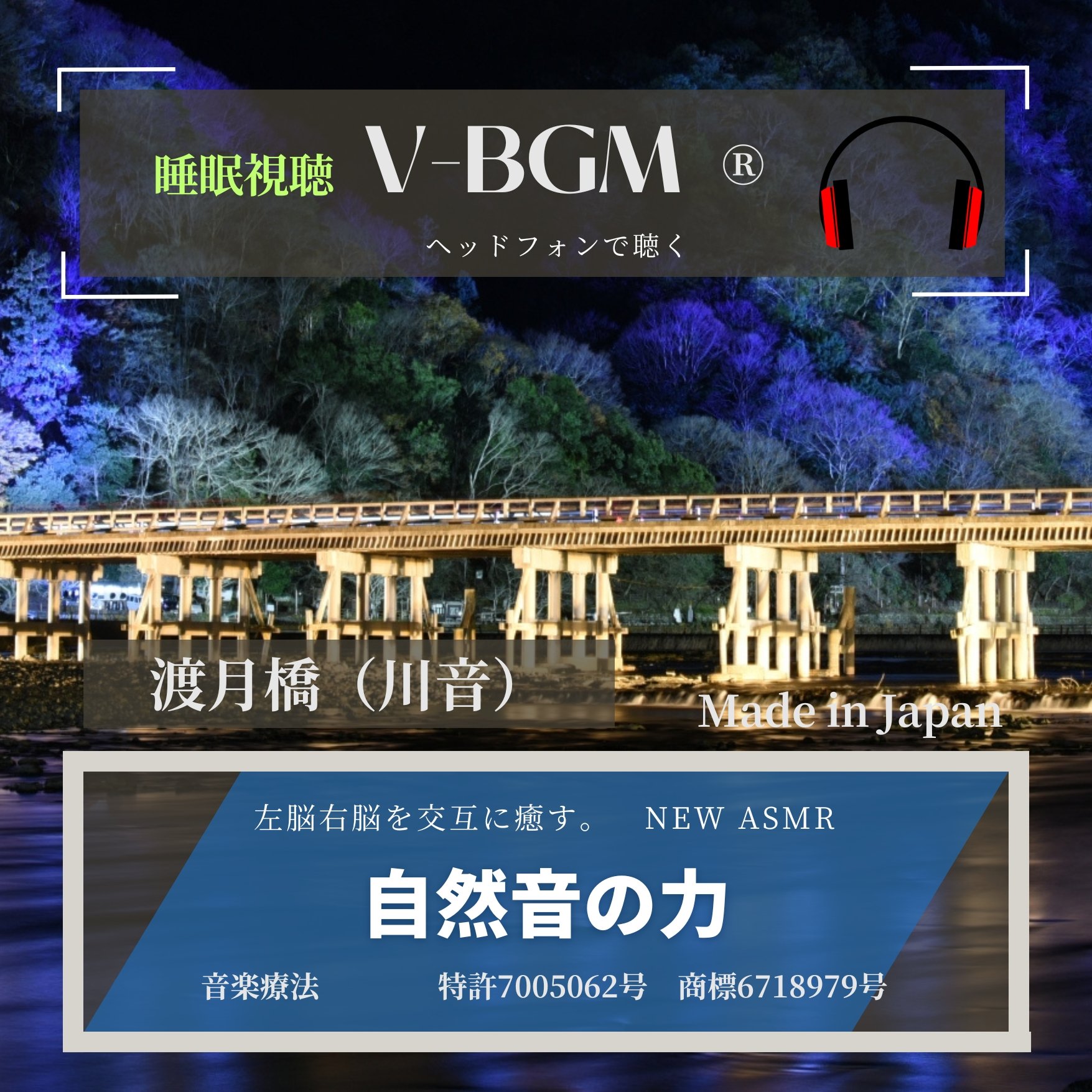 V-BGM は 100分の秒 ~ 1000分の秒の間に6種類の同種・自然音が流れます。より深く自然音を心(脳)へ伝えるためです。海外の使用例と同じくヘッドフォンにてご視聴ください。