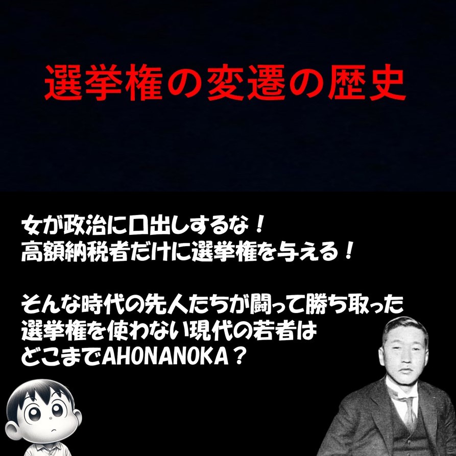 - 大正時代には、大正デモクラシーが進み、普通選挙を求める運動が盛んになり、1925年に男子普通選挙法が成立したが、女性には選挙権が与えられなかった。