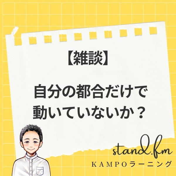 【雑談】自分の都合だけで動いていないか? 自分の周りに「自分勝手な人だな」と感じる人がいるように、もしかすると自分もまた周囲から同じように思われているかも知れません。 いいねやレター、コメントなどが毎日の励みになります。レターは随時募集中ですのでお待ちしております。 メンバーシップも絶賛募集中です。 中医学や漢方薬、生薬、ビジネスなどにご興味のある方は過去に色々と配信しておりますので是非ともご登録の上、お聞きくださればと思います。 #漢方 #漢方薬 #生薬 #中医学 #自分勝手